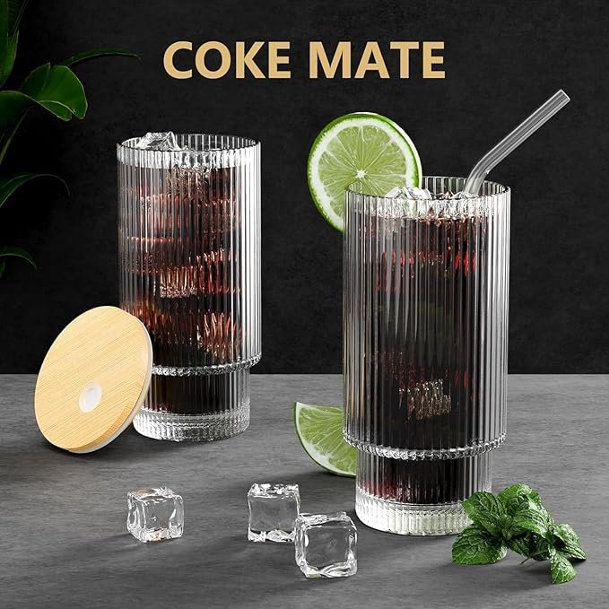 - 🍻【Suitable for Any Occasion】The elegant glassware are great for any hot and cold drinks for any occasion. You can use it to drink refreshing beer, make perfect cocktails, whiskey, all kinds of tea, juice, milk shake. It is widely loved in homes, kitchens, milk tea shops, cafes, bars and restaurants.